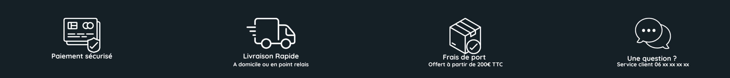 A savoir avant de commander : Frais de port offerts à partir de 200€ d’achat Livraison rapide en 48/72h Service client disponible par téléphone Nos marques